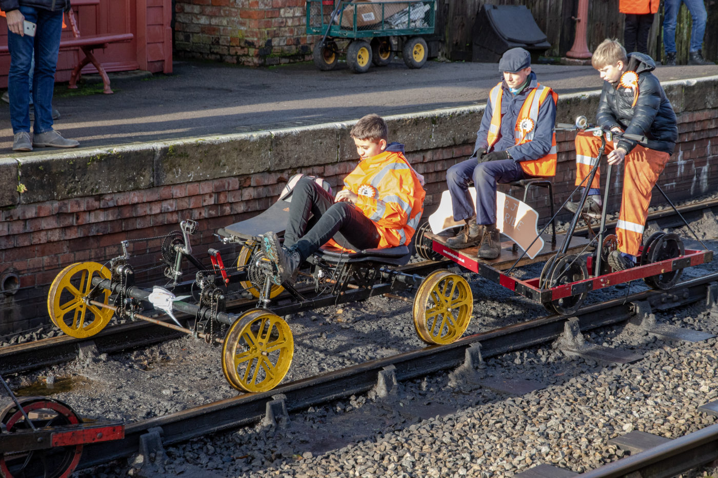 Freizeitvergnügen besonderer Art: Schienenvelos «Marke Eigenbau» auf der historischen Strecke.